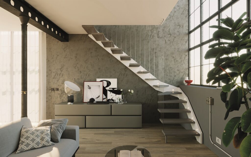 Radical est également idéal en tant qu’escalier pour mezzanine car ses possibilités de personnalisation permettent une association parfaite avec tous les styles