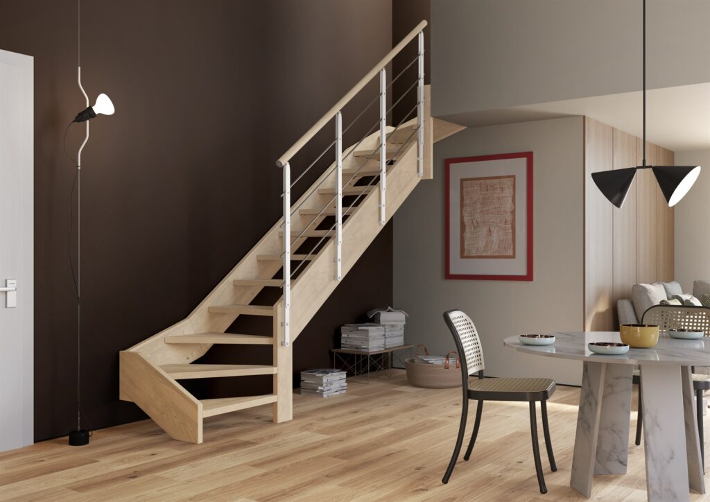 - Les finitions des marches et de la main courante en bois sont toujours assorties.